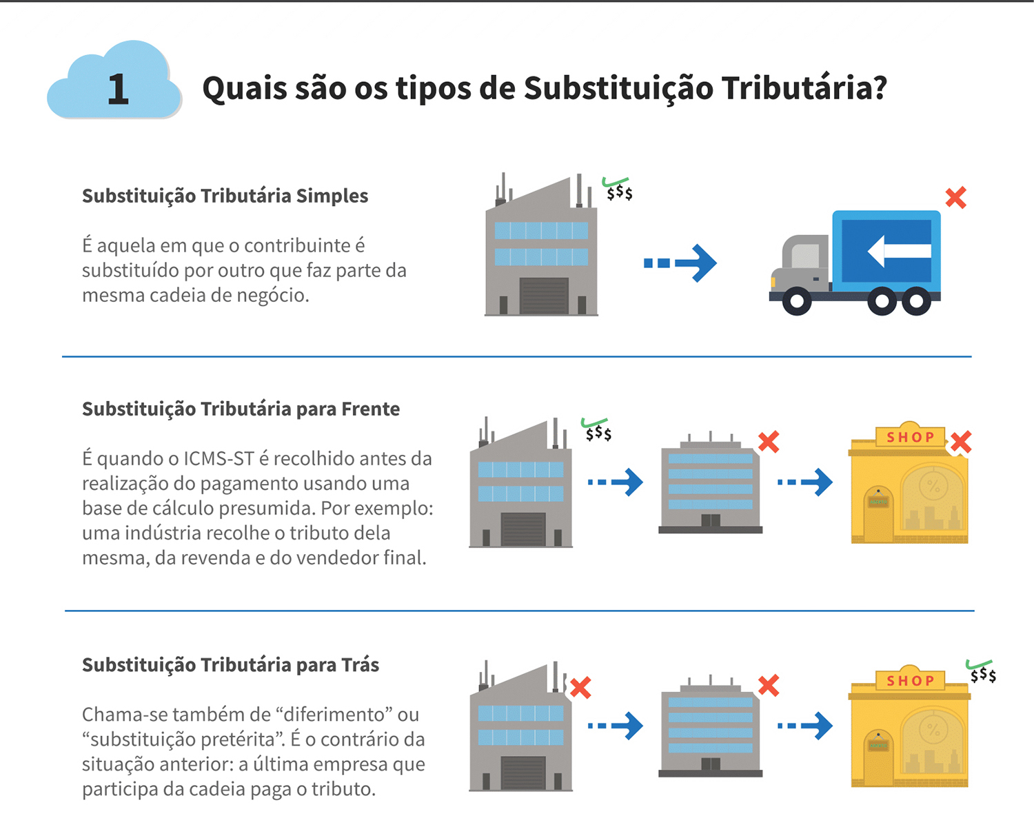 A Substituição Tributária é um mecanismo de arrecadação de tributos utilizado pelos governos federais e estaduais. O substituto tributário é o terceiro que a lei obriga a apurar o montante devido e cumprir a obrigação de pagamento do tributo “em lugar” do contribuinte.
