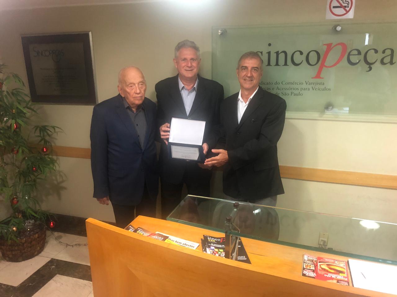 Após anunciar sua aposentadoria ao acumular 47 anos de experiência no mercado de reposição, Antonio Carlos de Paula foi homenageado pelo Sincopeças-SP através de seu presidente, Francisco Wagner De La Tôrre.
