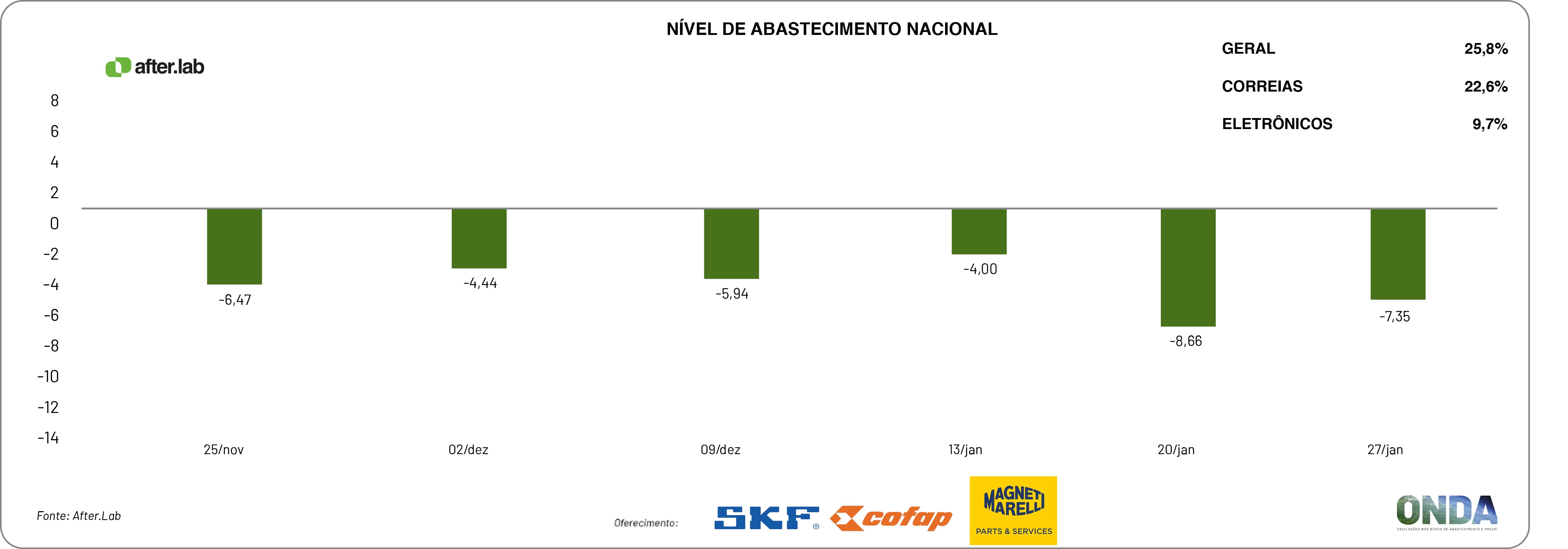 O núcleo de pesquisas da Novo Meio, o After.Lab, finalizou a produção de novos indicadores sobre o ONDA – Oscilações nos Níveis de Abastecimento e Preços desse aftermarket automotivo, segundo os empresários do varejo de veículos leves do país.
