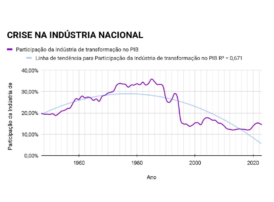 Desde o fim do regime nacional-desenvolvimentista, no final dos anos 1980, o Brasil praticamente abandonou a política de fortalecimento da indústria nacional, apostando na ilusão de que apenas o controle inflacionário, o equilíbrio fiscal, a política cambial e controle da miséria extrema através de políticas sociais compensatórias serão suficientes para promoção do desenvolvimento econômico e de quebra atrair investimentos privados para resolver os problemas estruturais do país. No entanto, os resultados desta estratégia têm sido um verdadeiro desastre para a indústria nacional, como pode ser observado nos indicadores da indústria de transformação e sua participação no PIB.