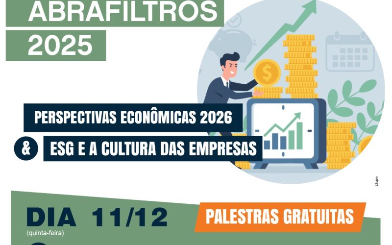 Abrafiltros – Associação Brasileira das Empresas de Filtros Automotivos, Industriais e para Estações de Tratamento de Água, Efluentes e Reúso promoverá, no dia 11 de dezembro, em sua sede em Santo André/SP, o último encontro de 2025. A programação inclui as palestras “Perspectivas Econômicas para 2026”, com a economista Taiza Tanan, e “ESG e Cultura Corporativa”, com Antonio Carlos R. Lopes, consultor em gestão de segurança e meio ambiente. “Participar desse último encontro da associação em 2025 é fundamental para termos acesso a informações relevantes sobre o cenário econômico, fundamentais para o planejamento dos negócios e para a tomada de decisões, bem como para adotar novas estratégias de práticas ambientais, sociais e de governança, fortalecendo a cultura da empresa e engajamento”, afirma João Moura, presidente executivo da Abrafiltros.