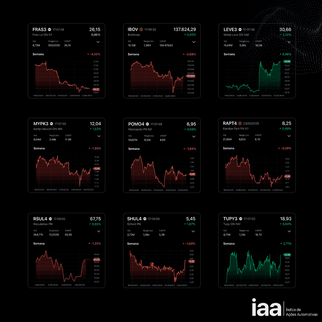 As ações automotivas acompanharam esse movimento e desaceleram e o IAA ficou em -0,61%.