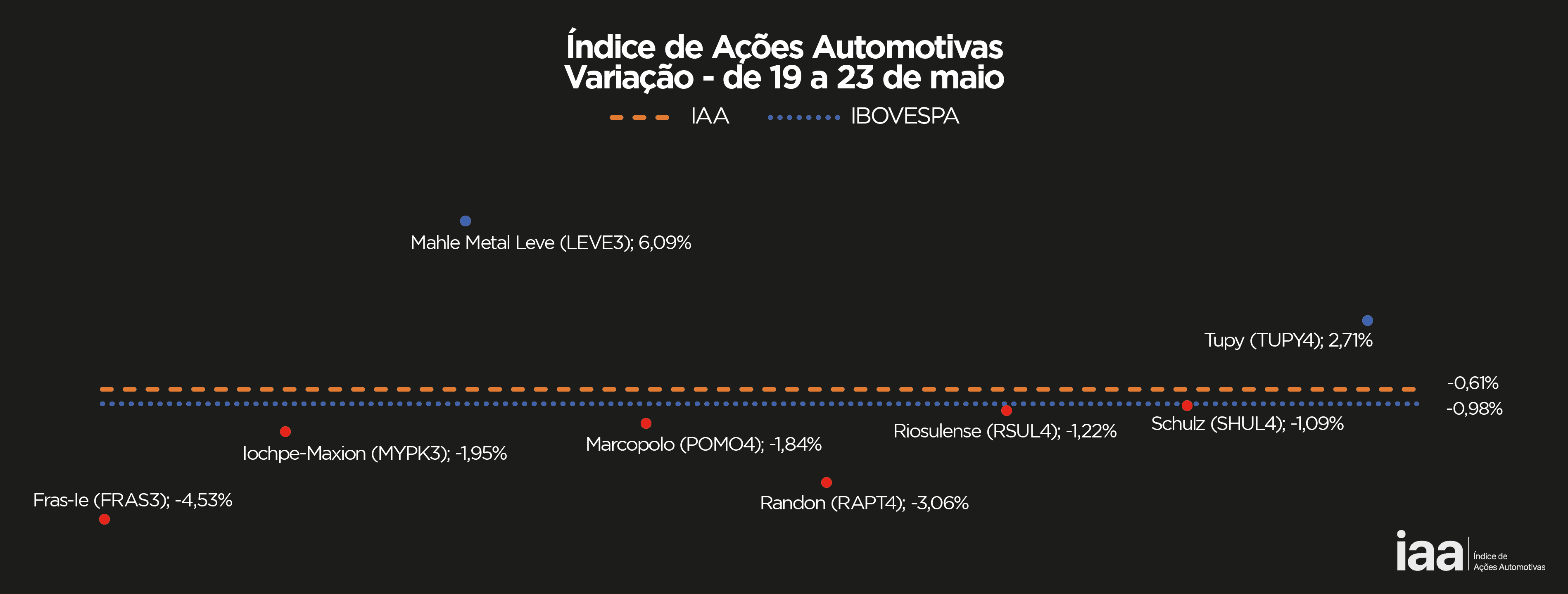 IAA encerrou semana de 19 a 23 de maio em -0,61%; enquanto variação do Ibovespa foi de -0,98%.