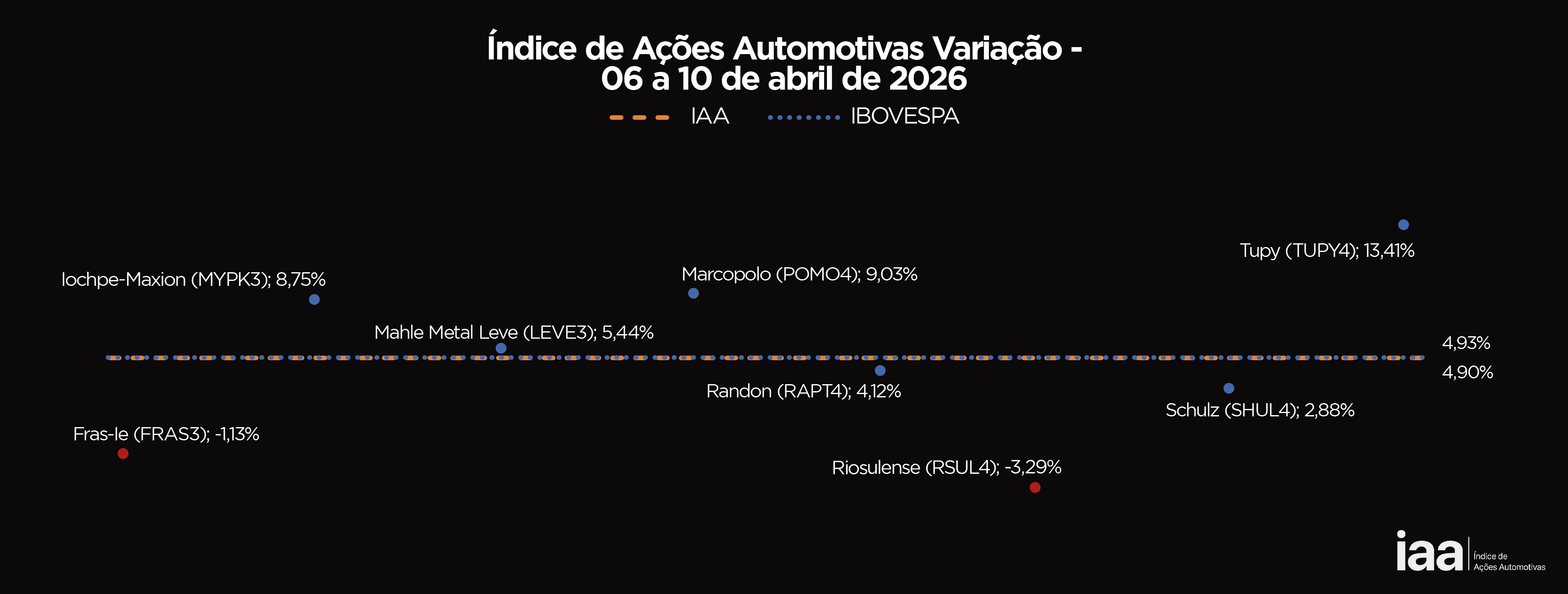 O IAA é o índice criado pelo After.Lab para medir as movimentações nas ações das empresas do setor automotivo listadas em Bolsa. Mesmo que ainda sejam poucas as empresas a operar nessa modalidade, já são suficientes para proporcionar uma leitura sobre o desempenho das operações relacionadas ao universo automotivo que abriram capital e usam o pregão do Ibovespa para conquistar investidores e alavancarem seus negócios.