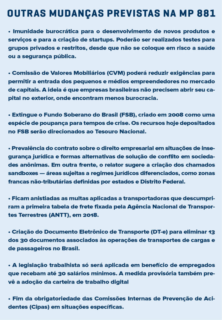 A MP 881/2019 libera pessoas físicas e empresas para desenvolver negócios considerados de baixo risco. Estados, Distrito Federal e municípios devem definir quais atividades econômicas poderão contar com a dispensa total de atos de liberação como licenças, autorizações, inscrições, registros ou alvarás. Essas atividades econômicas poderão ser desenvolvidas em qualquer horário ou dia da semana, desde que respeitem normas de direito de vizinhança, não causem danos ao meio ambiente, não gerem poluição sonora e não perturbem o sossego da população – na prática, autoriza o trabalho também aos domingos e feriados, eis aí uma questão a ser observada com atenção pelo varejo de autopeças.