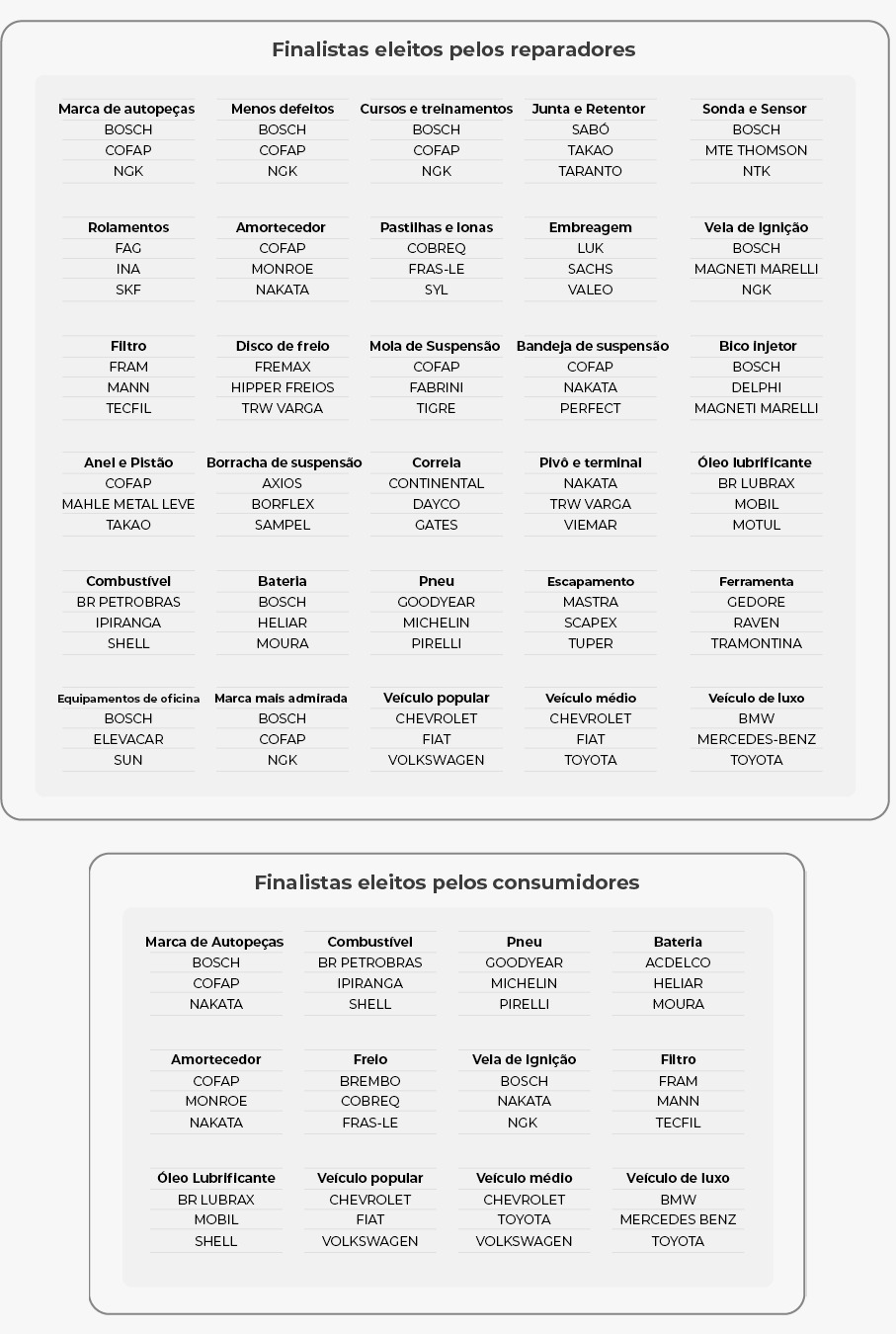 A pesquisa Autop of Mind apura as marcas de componentes mais lembrados pelos reparadores nos seguintes quesitos: