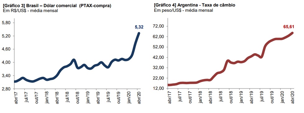 · Em termos históricos, ao totalizar US$ 293,6 milhões em abril, as exportações de autopeças reproduziram nível enfrentado no final da década de noventa. Grosso modo, é como se houvesse um recuo de 20 anos. Convém ressaltar ainda que entre os meses de fevereiro e abril desse ano, as exportações sofreram forte redução, da ordem de 55,6%. A abertura gradual dos mercados ajudará na retomada, no entanto, estimamos que, a despeito da posição favorável da taxa de câmbio e de alguns fatores sazonais, o retorno aos níveis pré-pandemia só deve acontecer no primeiro trimestre de 2021.
