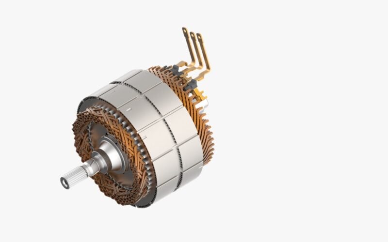 O motor elétrico eMotor HVH220, com tecnologia patenteada de enrolamento em grampos de alta tensão da BorgWarner, opera dentro de um sistema de propulsão de 800V. Com um diâmetro externo do estator de 220 mm, esta solução de motor integra um rotor de ímã permanente e melhorias exclusivas no isolamento do estator, garantindo durabilidade e confiabilidade incomparáveis. Capaz de gerar até 300 kW de potência e atingir uma velocidade máxima de 18.000 rpm, o HVH220 da BorgWarner atinge eficiências máximas superiores a 97%.
