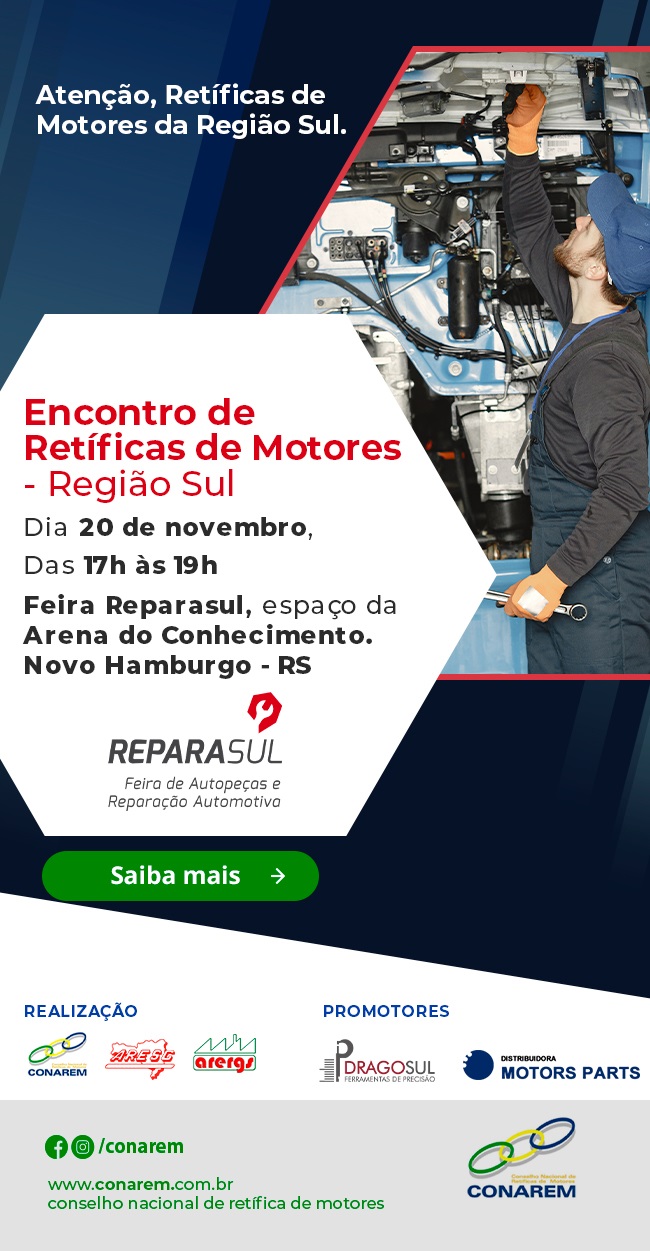 Reunião para apresentar temas relevantes do setor, como o estudo sobre o perfil de retíficas, acontece dia 20 de novembro, às 17h, durante a Reparasul - Feira de Autopeças e Reparação Automotiva, em Novo Hamburgo/RS.
