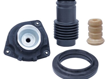 O kit de suspensão é composto por duas peças: coifa protetora da haste do amortecedor e batente. Já o top kit, além desses componentes, traz também coxim e rolamento.