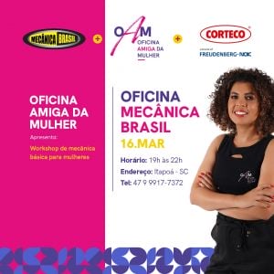 Em março, mês em que se comemora o Dia Internacional da Mulher, serão realizados três workshops 100% gratuitos e socioeducativos de Mecânica Básica para Mulheres. Os encontros acontecerão na Mecânica Brasil, em Itapoá (SC); na JR Multimarcas, em Uberaba (MG) e na Porto Som, em Embu Guaçu (SP).