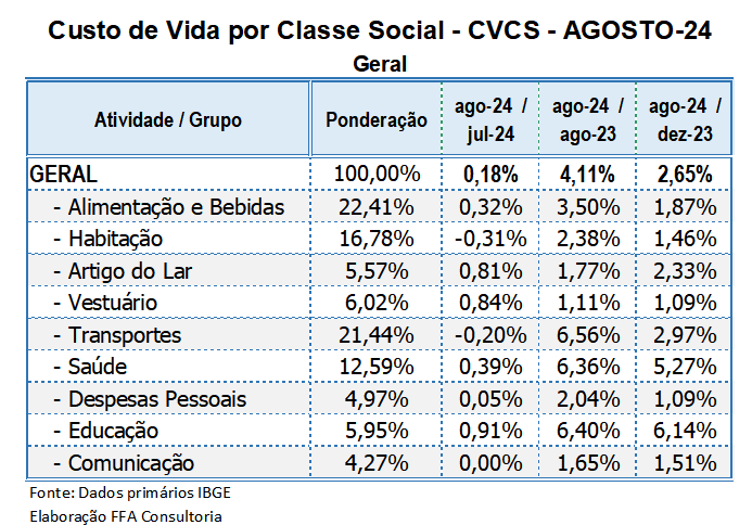 CUSTO DE VIDA POR CLASSE SOCIAL (CVCS)
