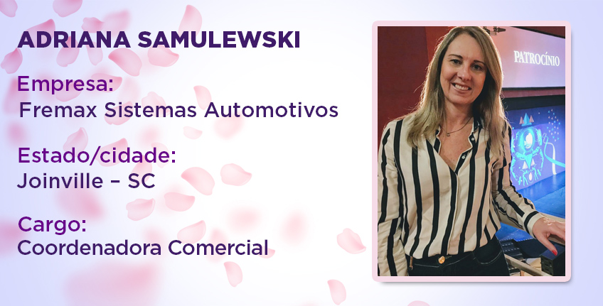 Adriana Samuleswki: Eu já trabalho há uns bons anos no segmento automotivo e gosto muito. Apesar da predominância masculina, eu me sinto muito à vontade aqui. Independente do segmento que as mulheres estejam inseridas é preciso se destacar e conquistar seu espaço.