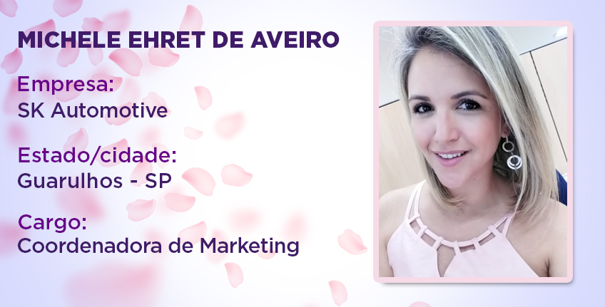 Elaine Aparecida França: Significa igualdade de gêneros! Adoro trabalhar nesse segmento. Quando comecei há 16 anos, éramos poucas mulheres. Aprendi muito com os homens que convivi e agradeço a cada um pela paciência de terem me ensinado já que nosso setor é muito técnico.