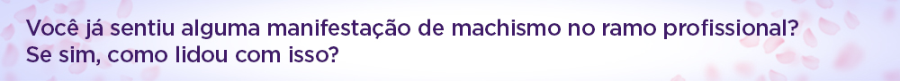 Michele Ehret de Aveiro: Sim… mas felizmente, é uma minoria que ainda acredita que mulheres não são capazes de trabalhar no setor. A melhor forma de lidar com isso é não valorizar atitudes como essa, e fazer nosso trabalho da melhor forma possível. Não precisamos trabalhar bem para provar algo aos outros, mas sim, pois é o que se espera de bons profissionais.
