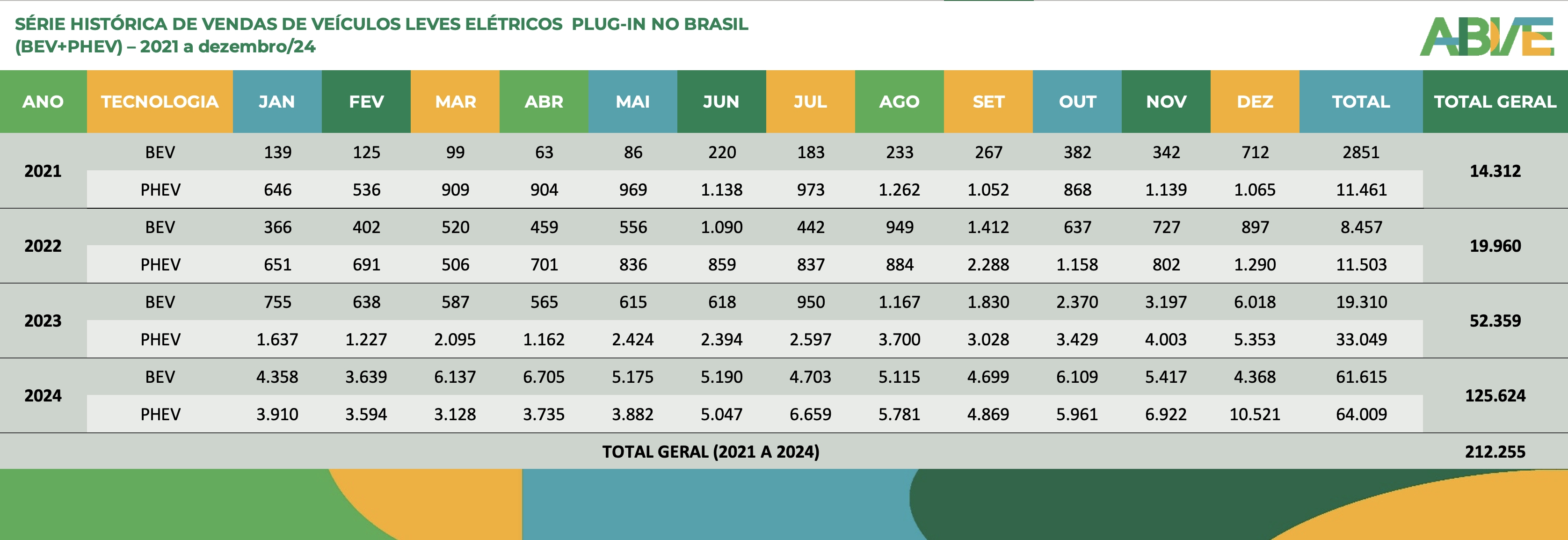 O ano de 2024 foi de grande evolução para o mercado de veículos elétricos plug-in, que incluem os BEV 100% elétricos e os PHEV híbridos com recarga externa.