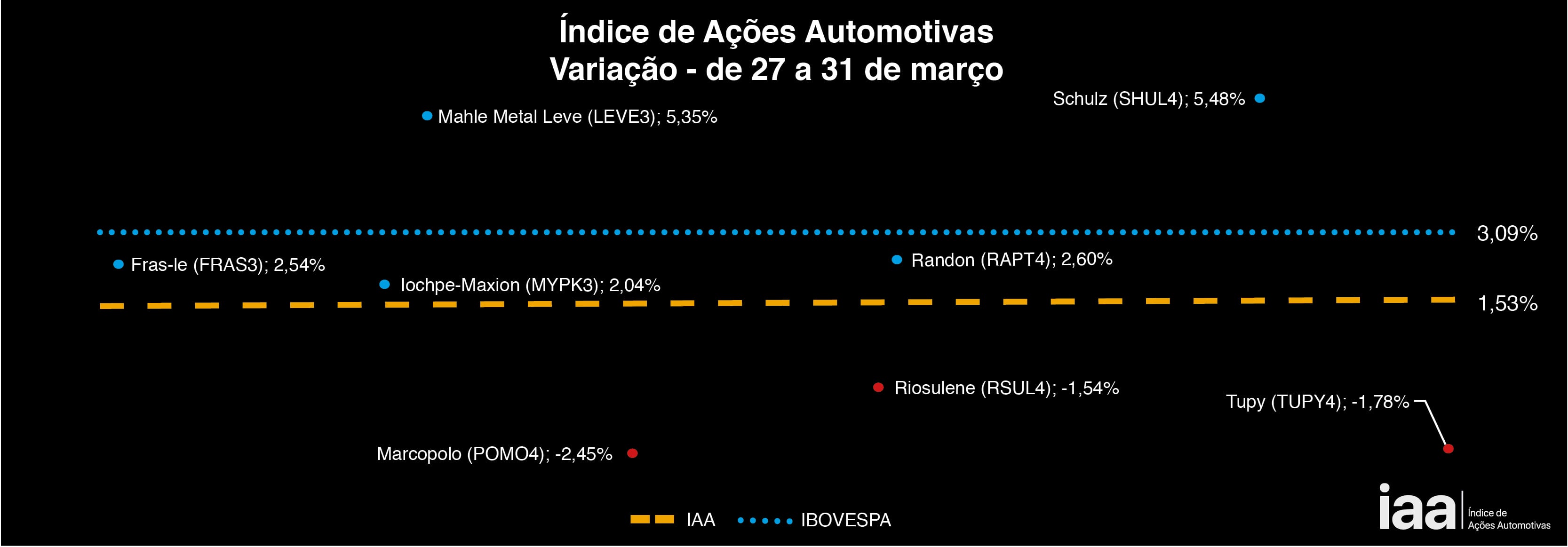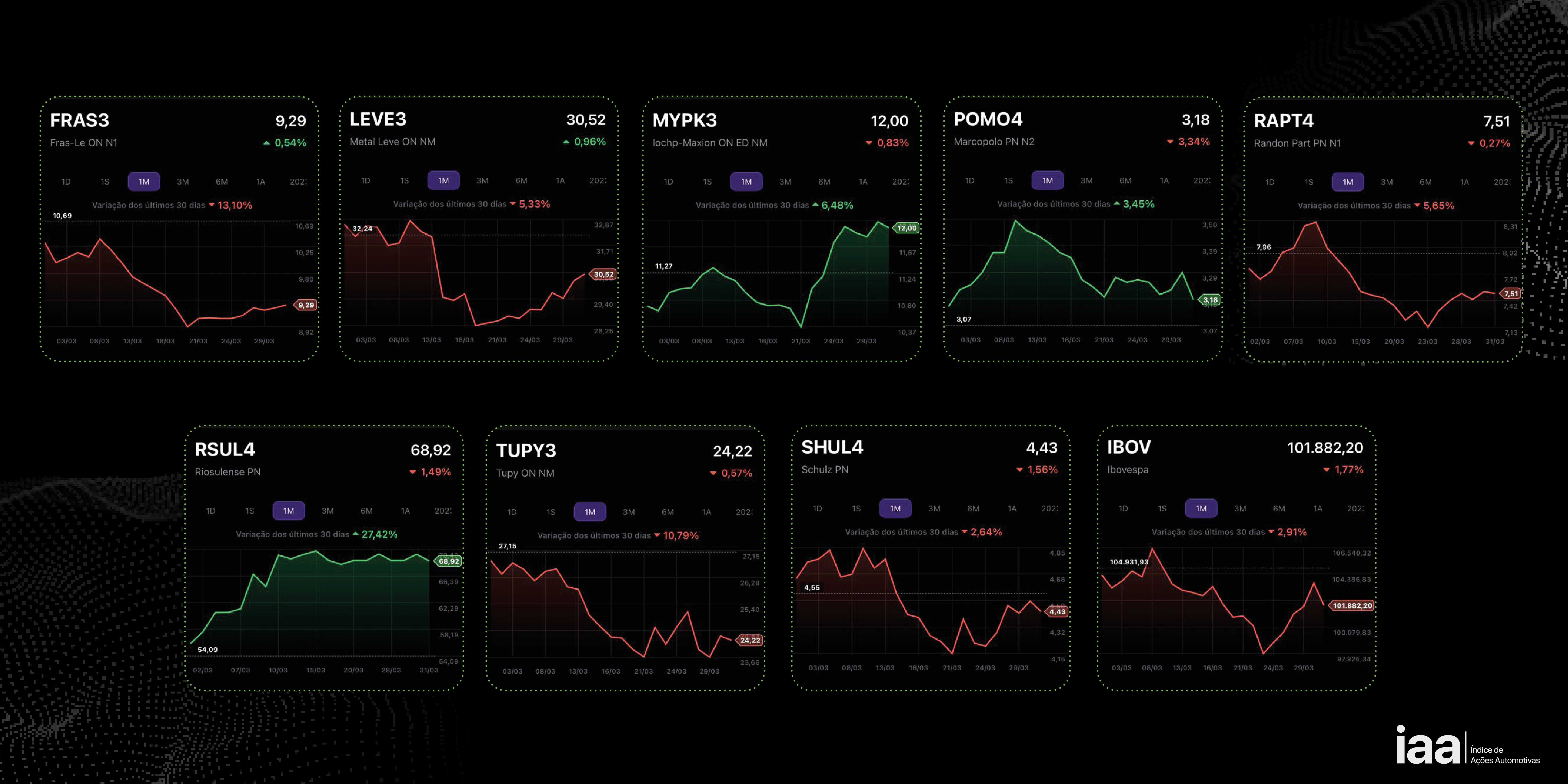 Confira o desempenho das ações automotivas listadas pelo IAA