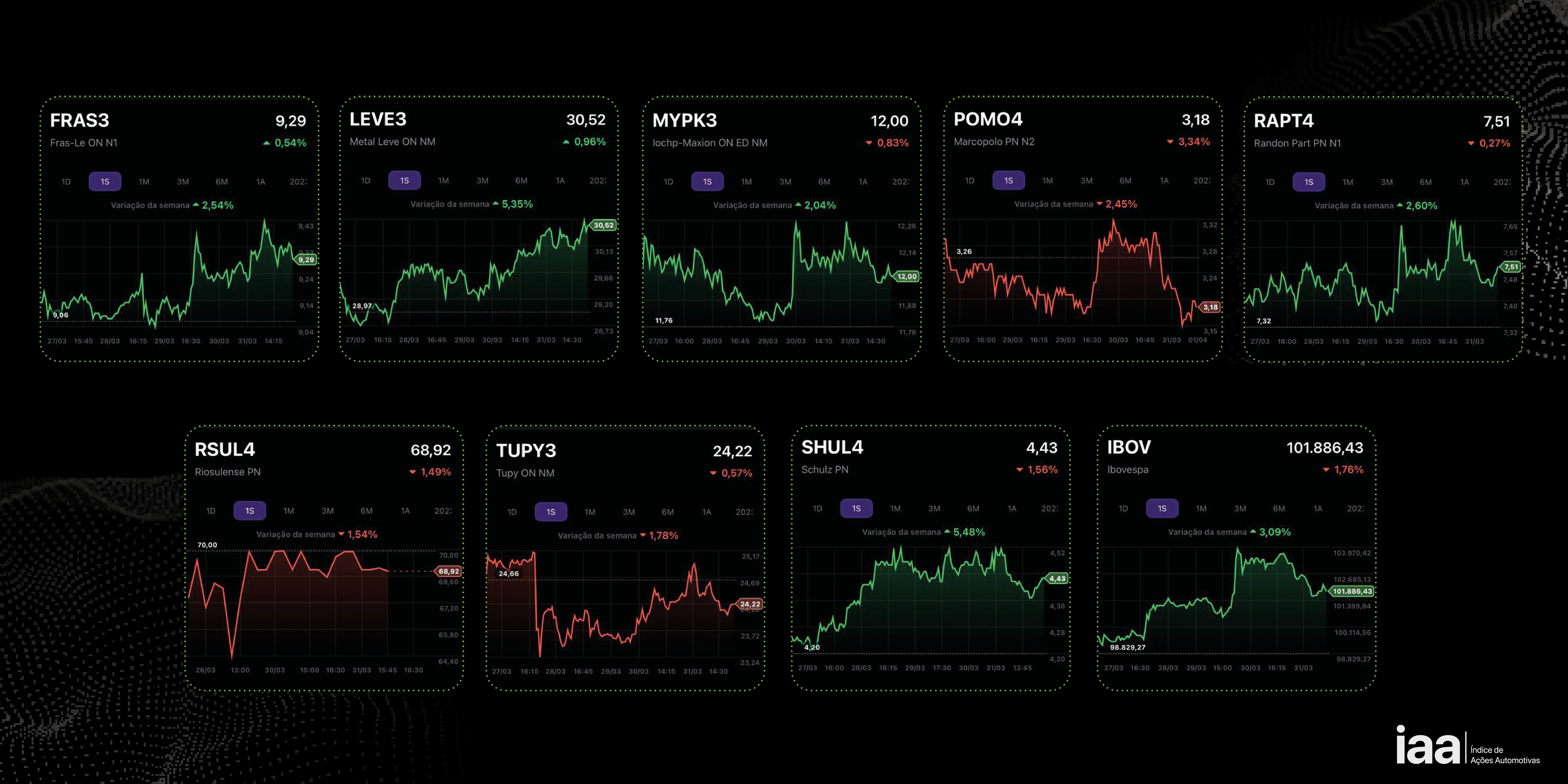 O IAA é o novo índice criado pela Plataforma Automotiva para medir movimentações nas ações do segmento listadas em Bolsa. Mesmo que ainda sejam poucas as empresas a operar nessa modalidade, já são suficientes para proporcionar uma leitura sobre o desempenho das operações relacionadas ao universo automotivo que abriram capital e usam o pregão do Ibovespa para conquistar investidores e alavancarem seus negócios.