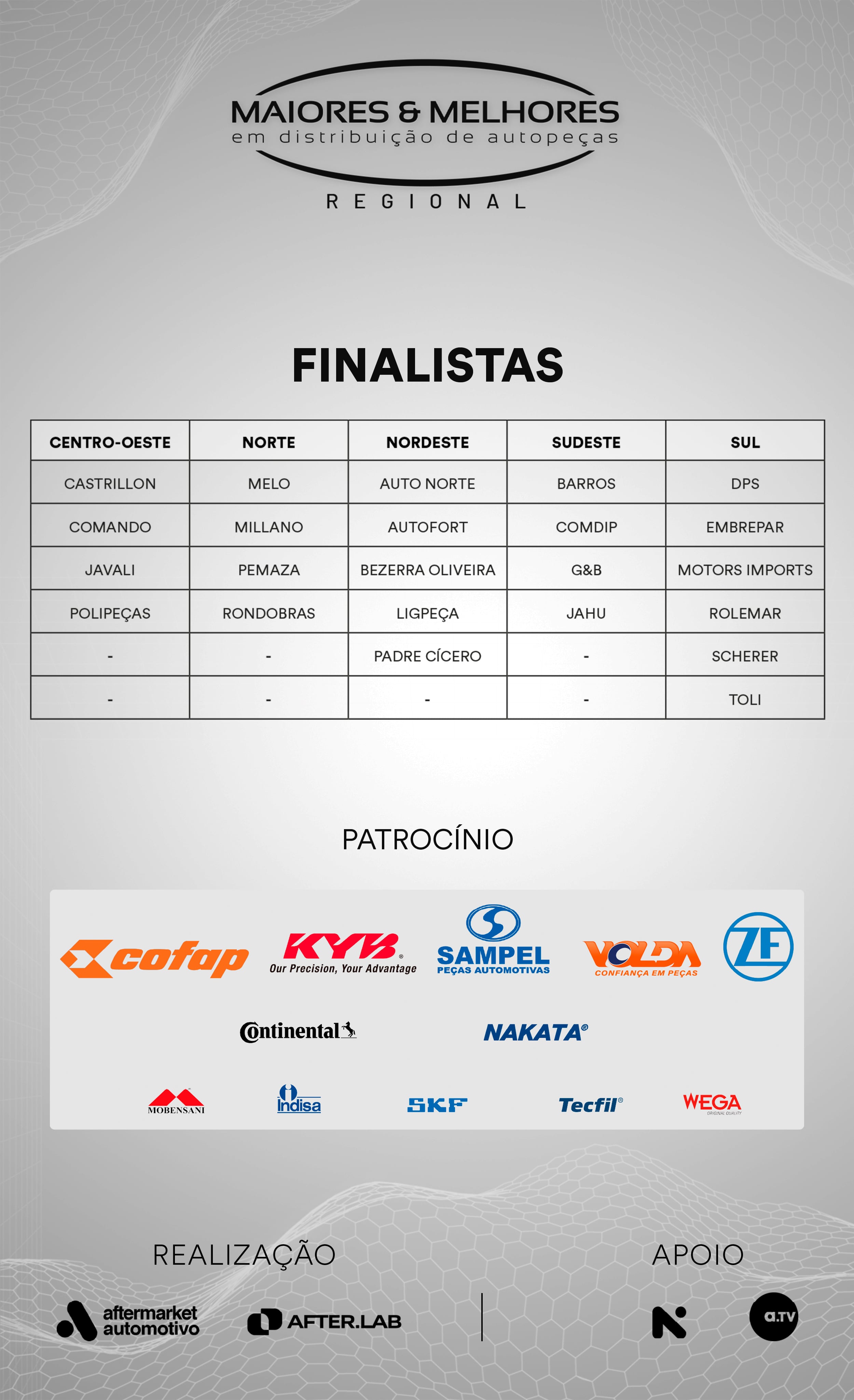 Chegou a hora de você vai conhecer os vencedores da segunda edição da pesquisa em que os varejistas de autopeças elegem as maiores e melhores empresas de distribuição de componentes automotivos, com atuação focada em cada uma das 5 regiões do Brasil.