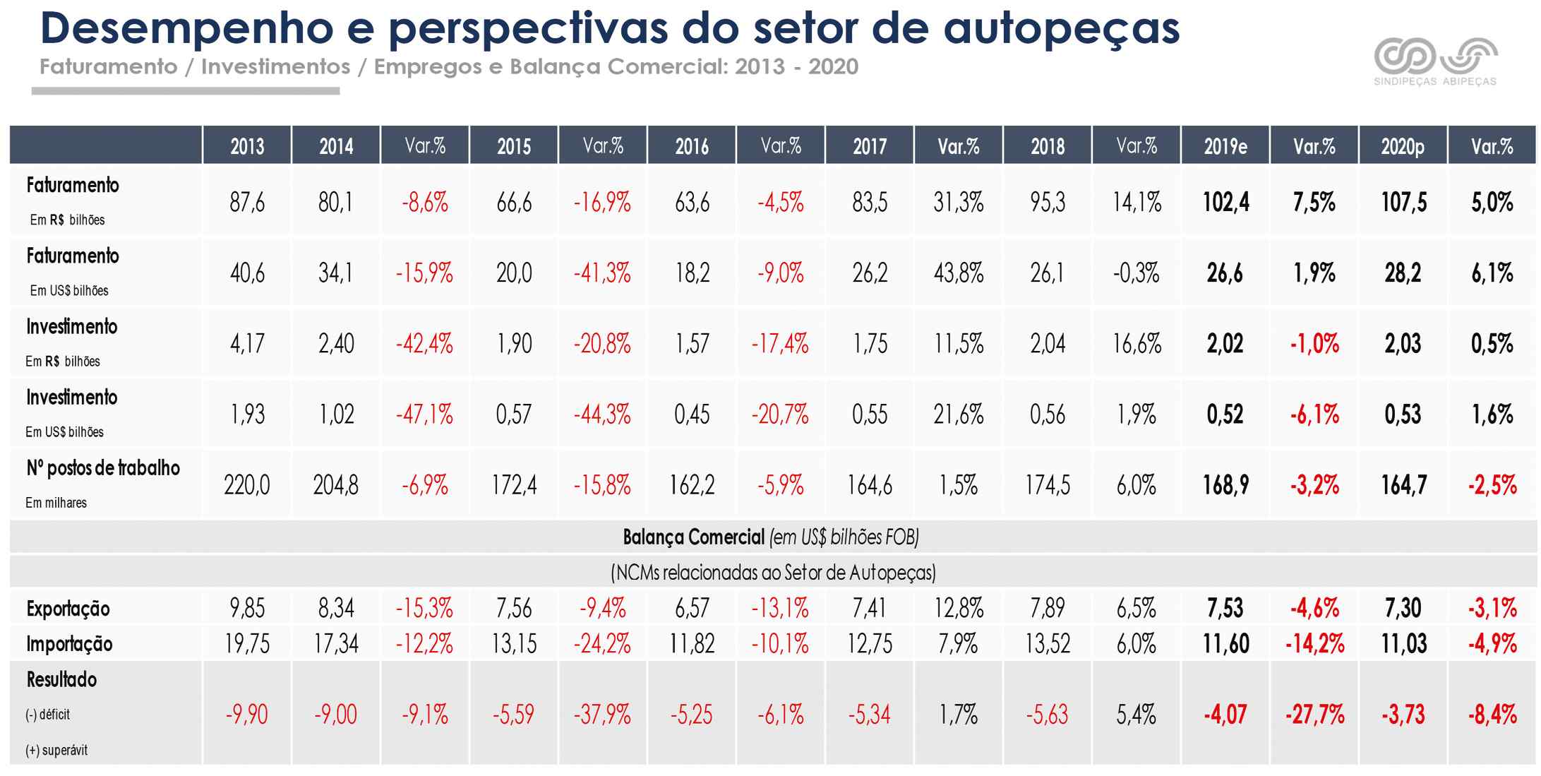 A indústria brasileira de autopeças ainda está em processo de recuperação após a grave crise econômica que reduziu a produção de veículos no país. Segundo Dan Ioschpe, o faturamento do setor deve atingir os 102 bilhões de reais este ano e 107 bilhões em 2020, o que representará um crescimento de 5%. “Chegamos ao piso dessa indústria em 2016 a partir da crise iniciada em 2014 que afetou muito o setor. Mas a boa notícia é que a gente está no terceiro ano de recuperação e antevendo o quarto ano de crescimento também”.