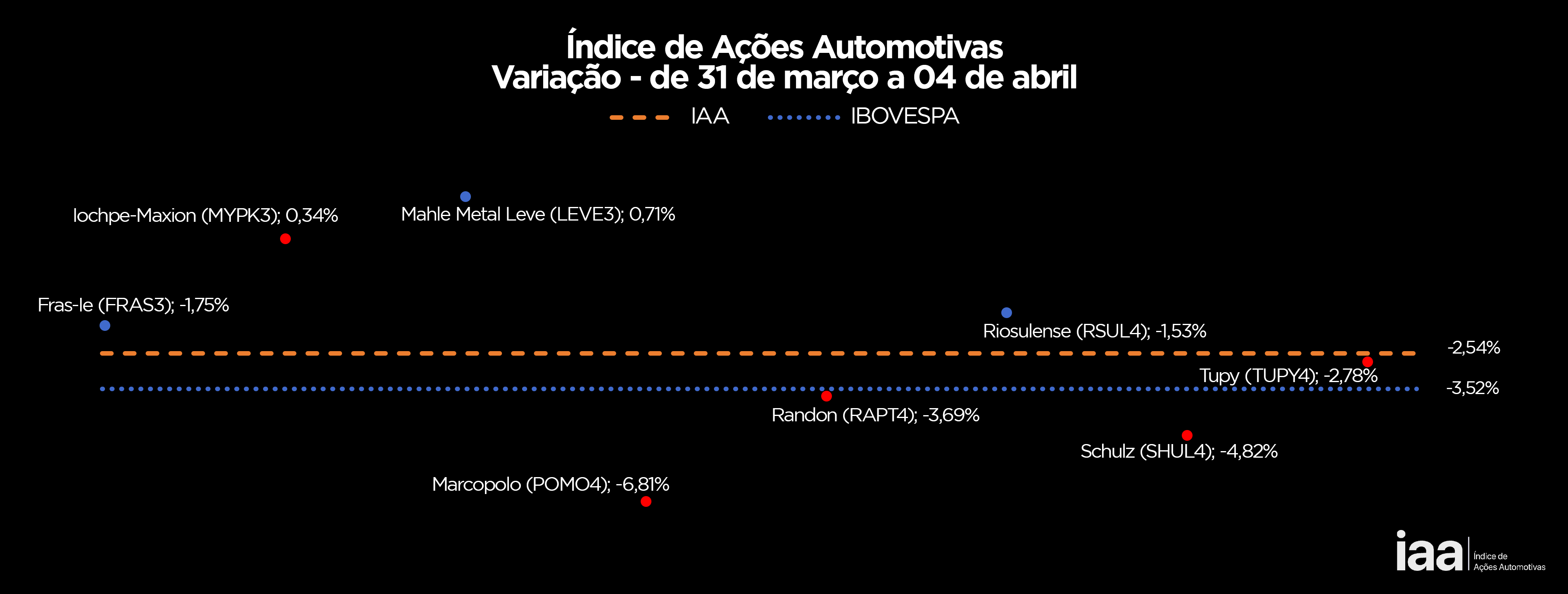 A resposta chinesa às medidas protecionistas adotadas pelos Estados Unidos abalou com o mercado de ações em todo o mundo e, a maior parte dos papéis que integram o índice automotivo desvalorizaram no período.