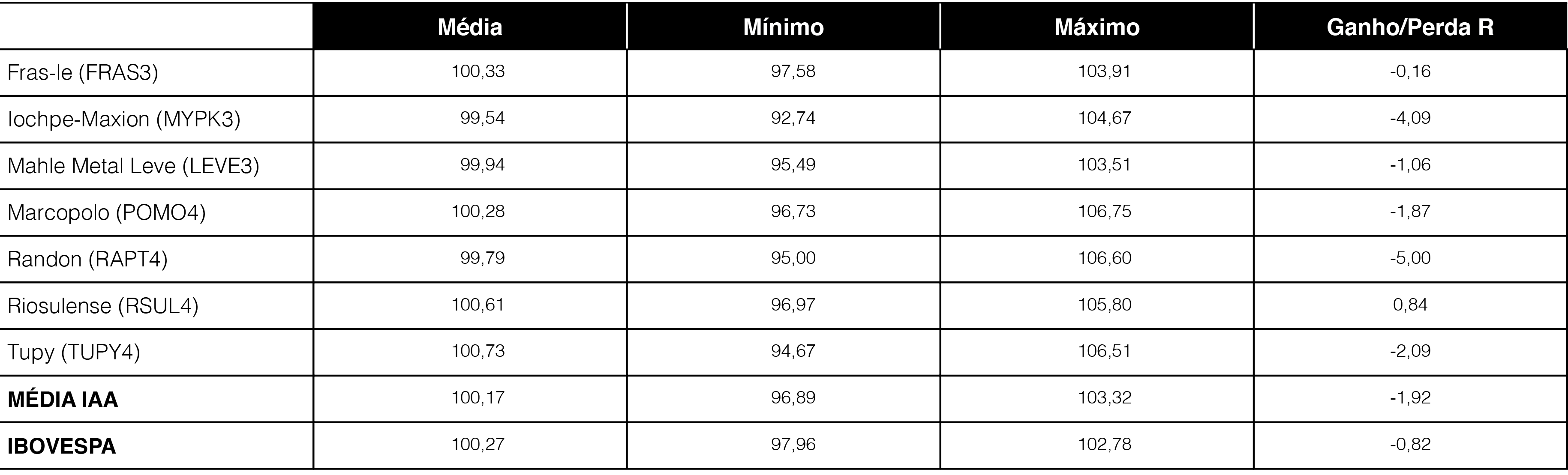 O IAA é o novo índice criado pela Plataforma Automotiva para para medir movimentações nas ações do segmento listadas em Bolsa. Mesmo que ainda sejam poucas as empresas a operar nessa modalidade, já são suficientes para proporcionar uma leitura sobre o desempenho das operações relacionadas ao universo automotivo que abriram capital e usam o pregão do Ibovespa para conquistar investidores e alavancarem seus negócios.