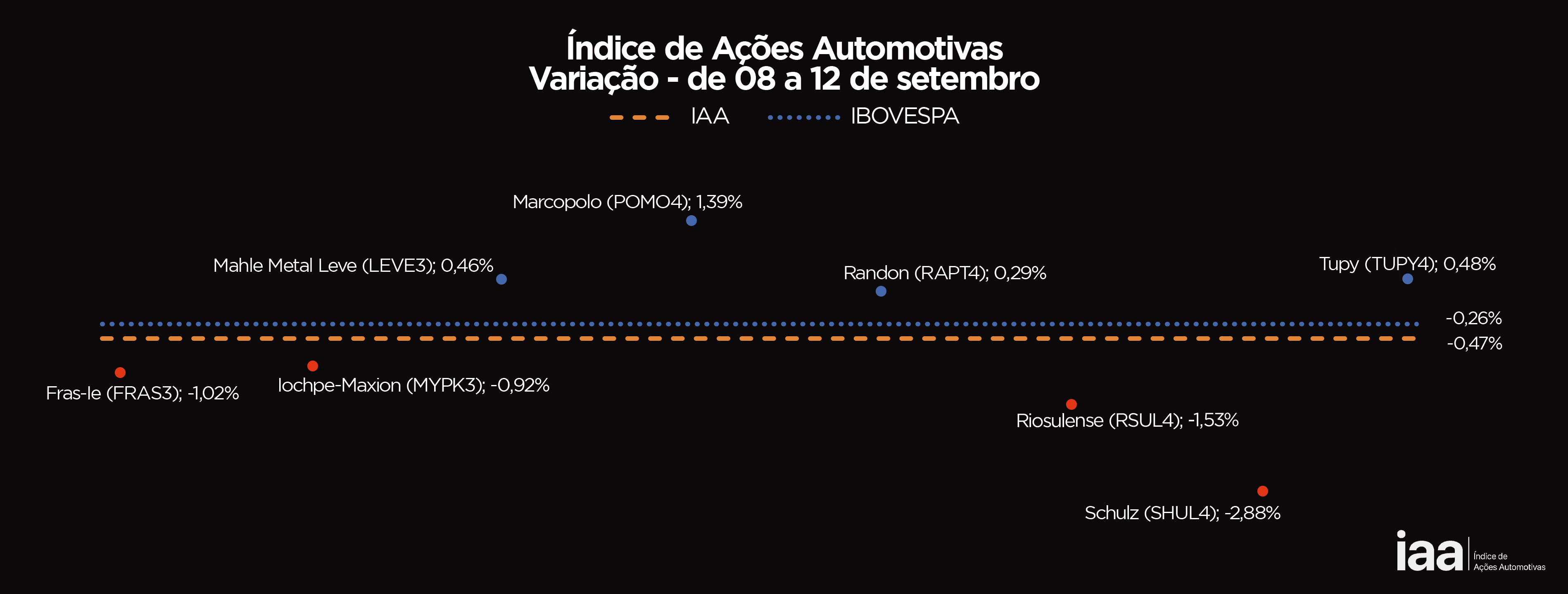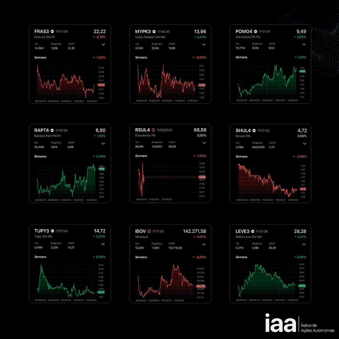 As ações automotivas acompanhram esse desempenho e o IAA encerrou a semana com uma desaceleração de -0,47%.