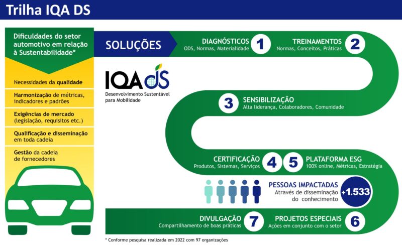 O IQA também promove projetos especiais voltados à descarbonização, capacitação de fornecedores e eficiência operacional. Um exemplo é a Escola de Qualidade e Manufatura IQA e ElringKlinger, em Piracicaba (SP), que forma jovens para o mercado automotivo, contribuindo para o desenvolvimento social e econômico local.