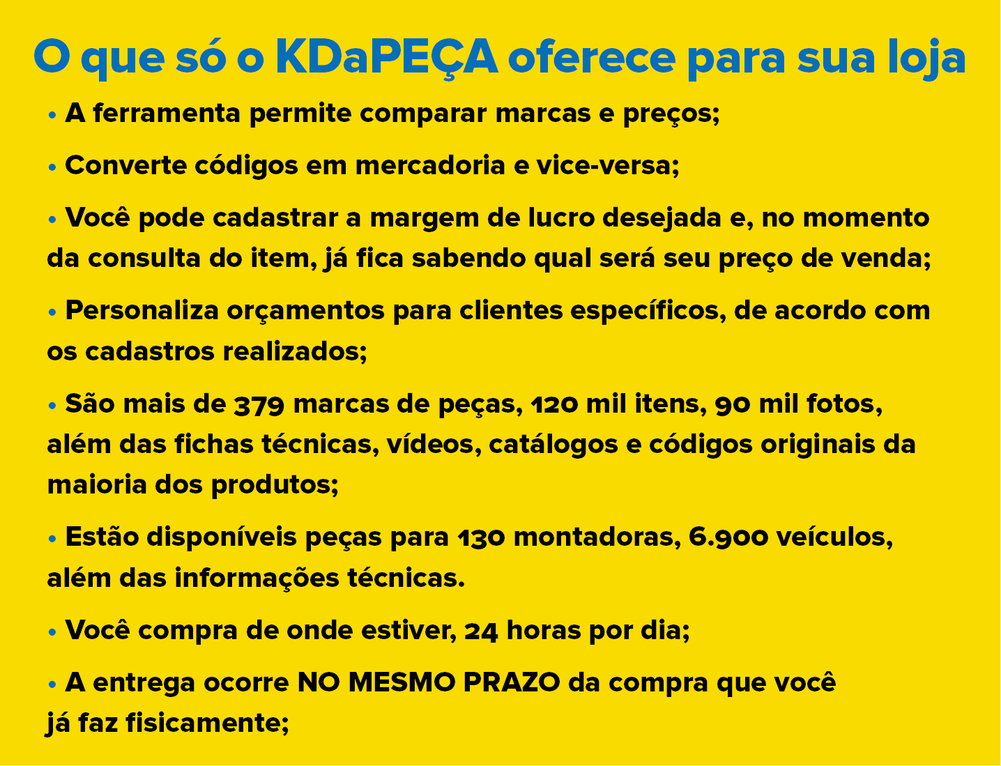 O mercado de autopeças já conta com uma iniciativa que proporciona um passo à frente para a solução desse impasse. Com o objetivo de oferecer ao varejo a melhor e mais avançada ferramenta para a compra de autopeças, o KDaPEÇA disponibiliza um completo sistema de garantia online que agilizar o processo e permite à loja assegurar a satisfação de seus clientes.