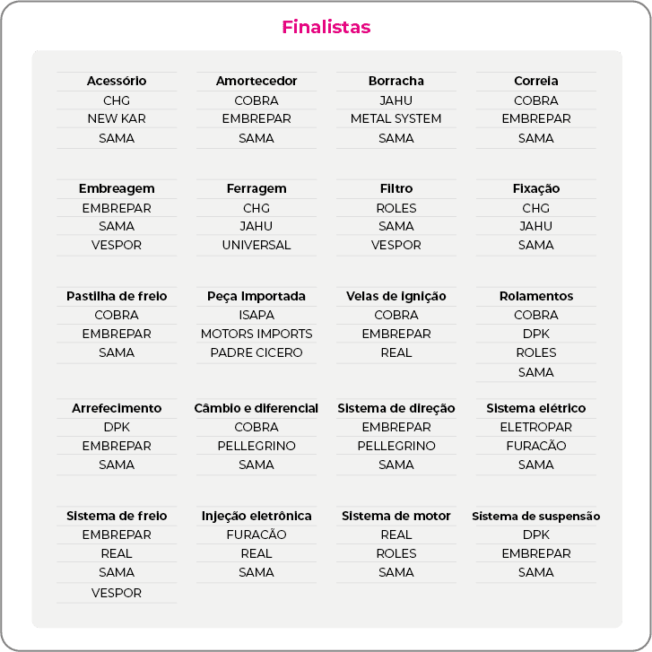 Confira os finalistas entre os maiores e melhores em distribuição de autopeças.