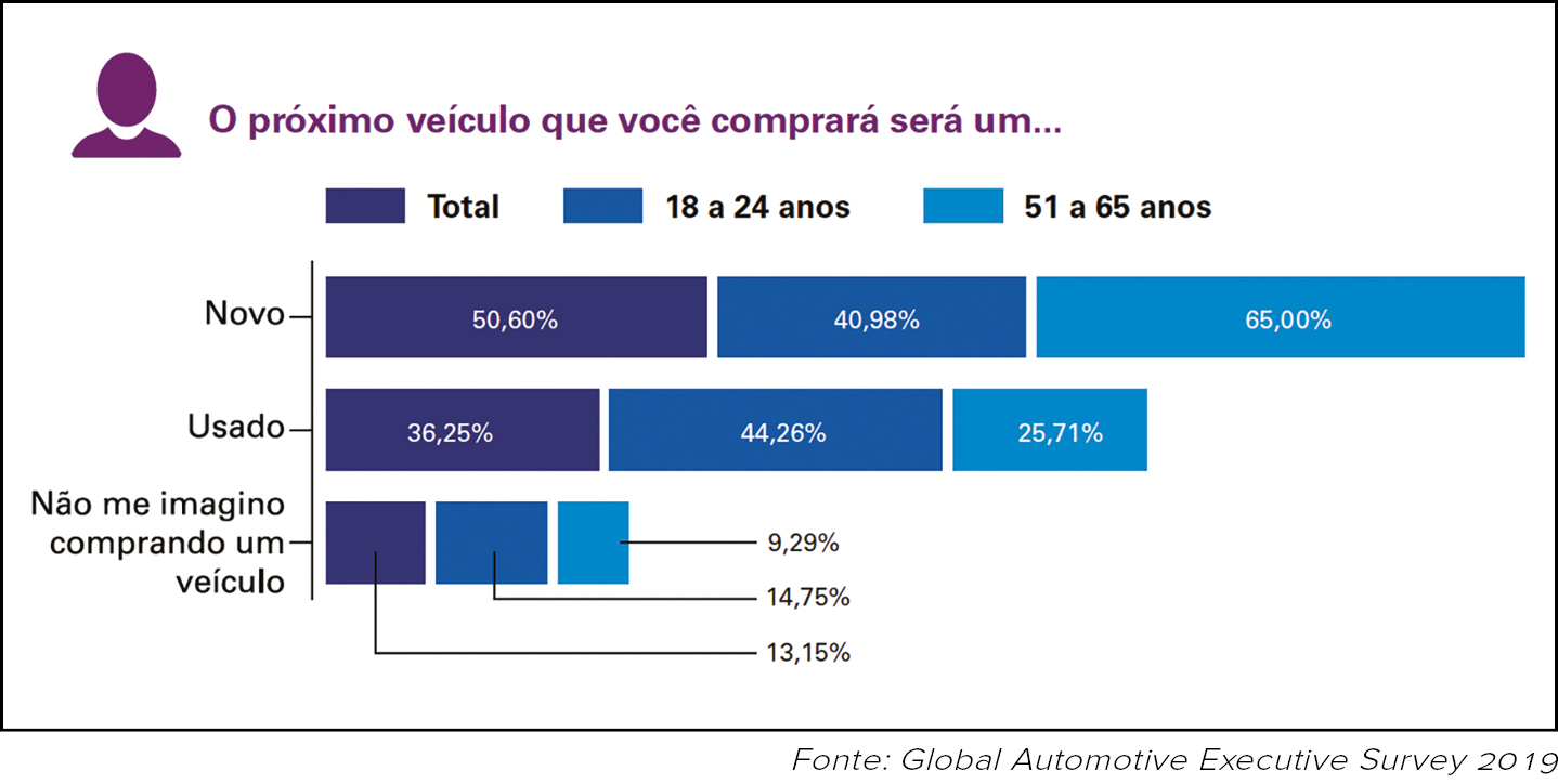 O estudo apurou que metade dos consumidores deseja comprar um veículo zero quilômetro em até dois anos – e essa intenção é mais nítida entre aqueles com mais de 51 anos de idade, ou seja, um público acostumado a ter o próprio carro.