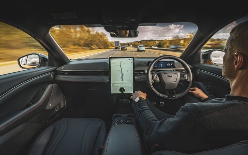 Este novo passo foi possível graças ao recurso de assitência à direção oferecido no mercado local pelo Ford Mustang Mach-E. O utilitário esportivo elétrico – apesar do nome Mustang – traz um recurso tecnológico que permite ao veículo esterçar, frear e acelerar sozinho, mas, ao mesmo tempo, monitora o motorista com câmera infravermelho para garantir que seus olhos estejam o tempo todo atentos à via. Denominado BlueCruise, trata-se de um sistema adquirido por meio de assinatura ao custo de 18 libras por mês.