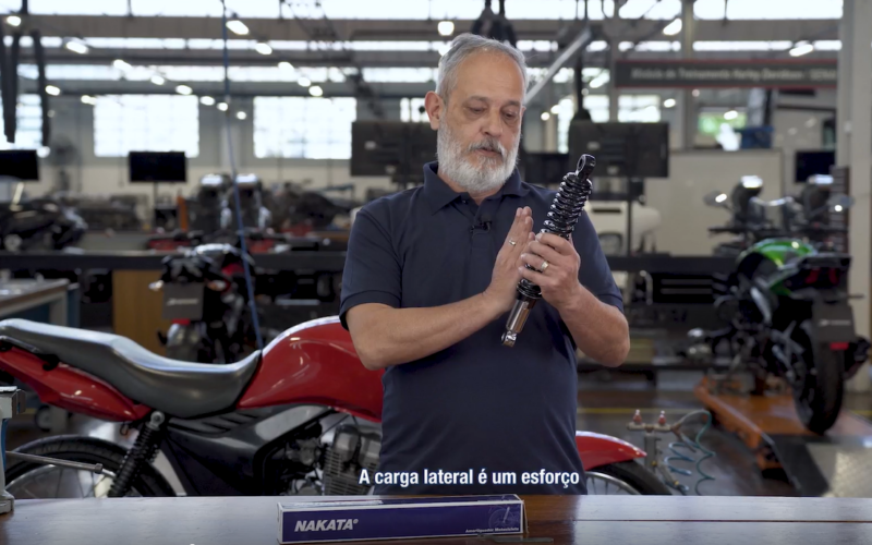 No primeiro episódio da série “Oficina de Moto em Ação”, promovida pela Nakata, o consultor de assistência técnica Eduardo Guimarães reforça que, durante a regulagem da suspensão, o peso transportado deve ser levado em conta. “Se eu deixar a pré-carga muito elevada, a moto vai ficar muito dura; se estiver muito baixa, vai ficar macia demais. Portanto, o peso tem que ser proporcional ao ajuste da pré-carga”, explica o especialista.