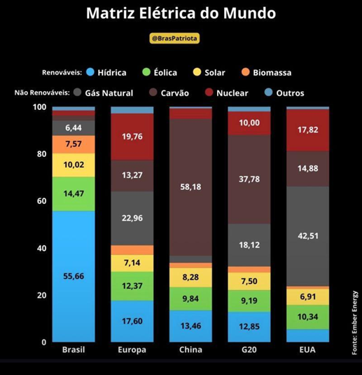 – Matriz elétrica mais limpa e renovável, que proporciona a menor pegada de carbono para os veículos elétricos que rodam no Brasil: