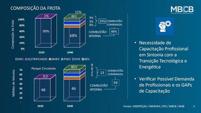 Projeções do MBCBrasil indicam que, em 2040, os modelos híbridos deverão representar parte significativa dos novos licenciamentos. Ao considerar o crescimento da frota e a lenta renovação, a consequência será clara: o número absoluto de veículos com motores a combustão seguirá elevado nas próximas décadas, o que mantém o aftermarket como um elo vital da cadeia automotiva.
