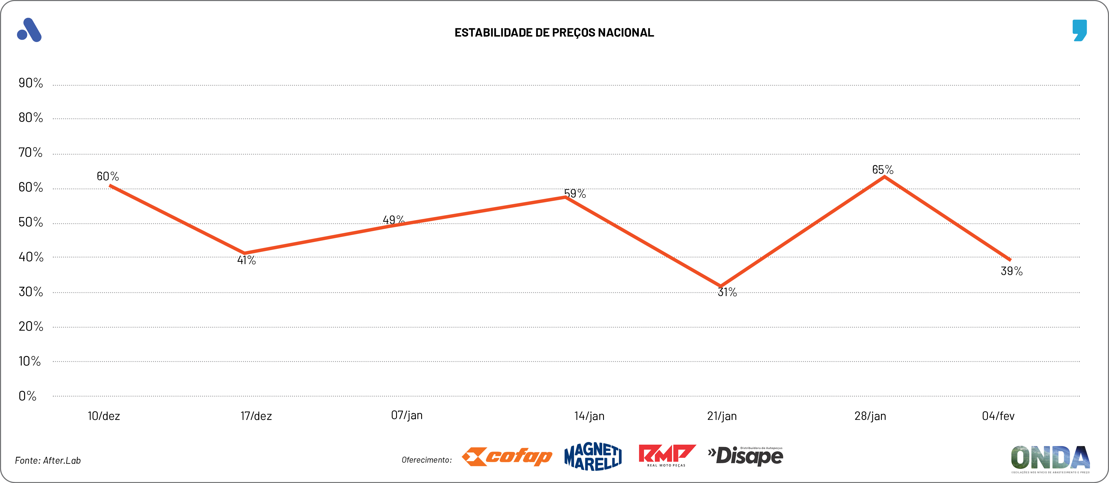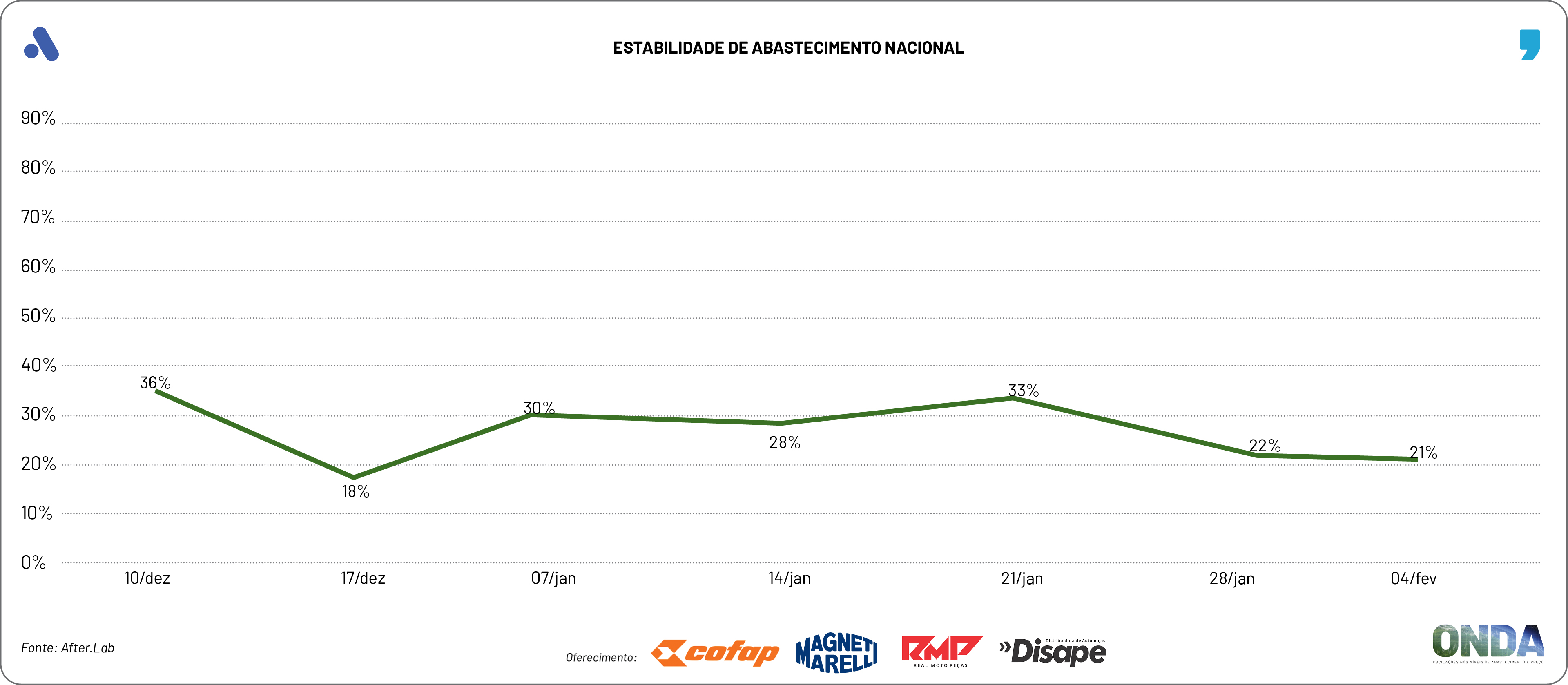Acompanhe os indicadores sobre o ONDA – Oscilações nos Níveis de Abastecimento e Preços do aftermarket automotivo, segundo os empresários do varejo de veículos leves do país.