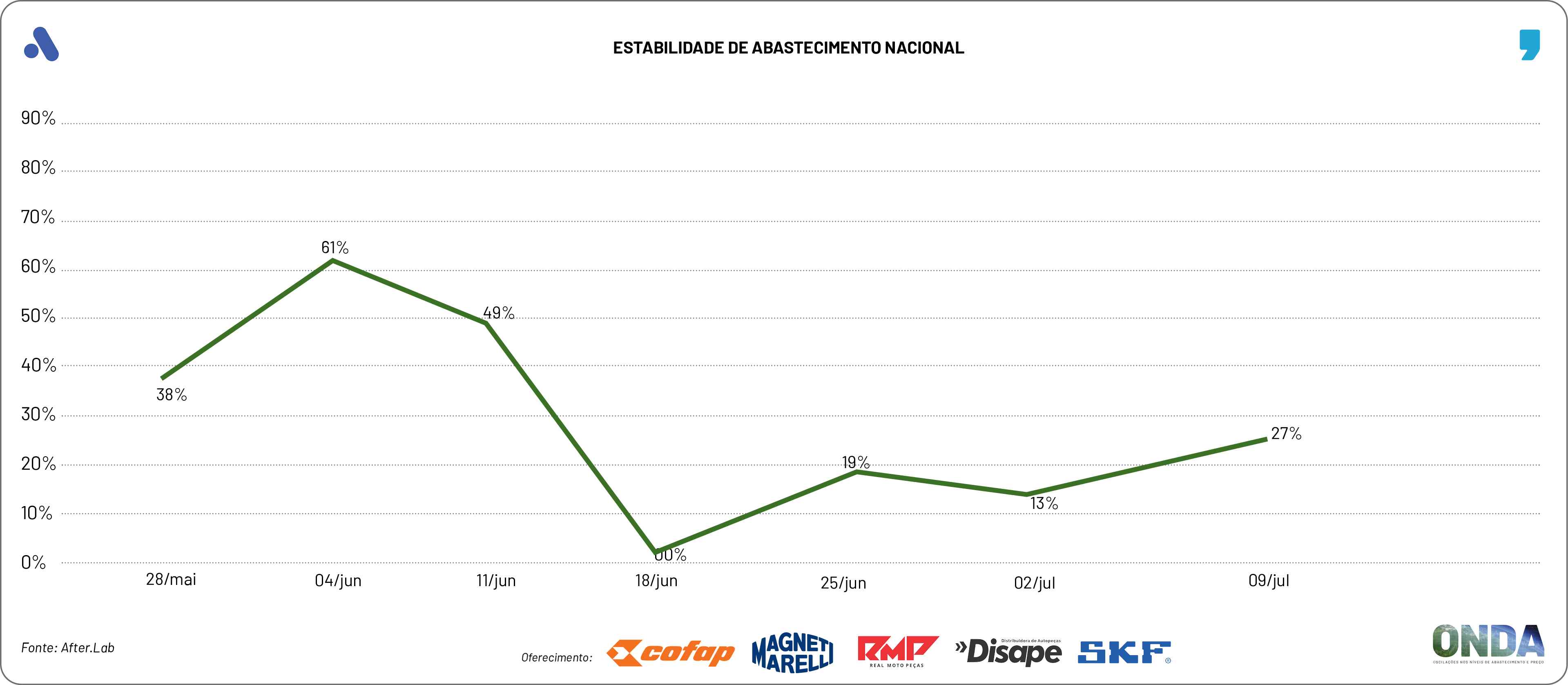 Acompanhe os indicadores sobre o ONDA – Oscilações nos Níveis de Abastecimento e Preços do aftermarket automotivo, segundo os empresários do varejo de veículos leves do país.