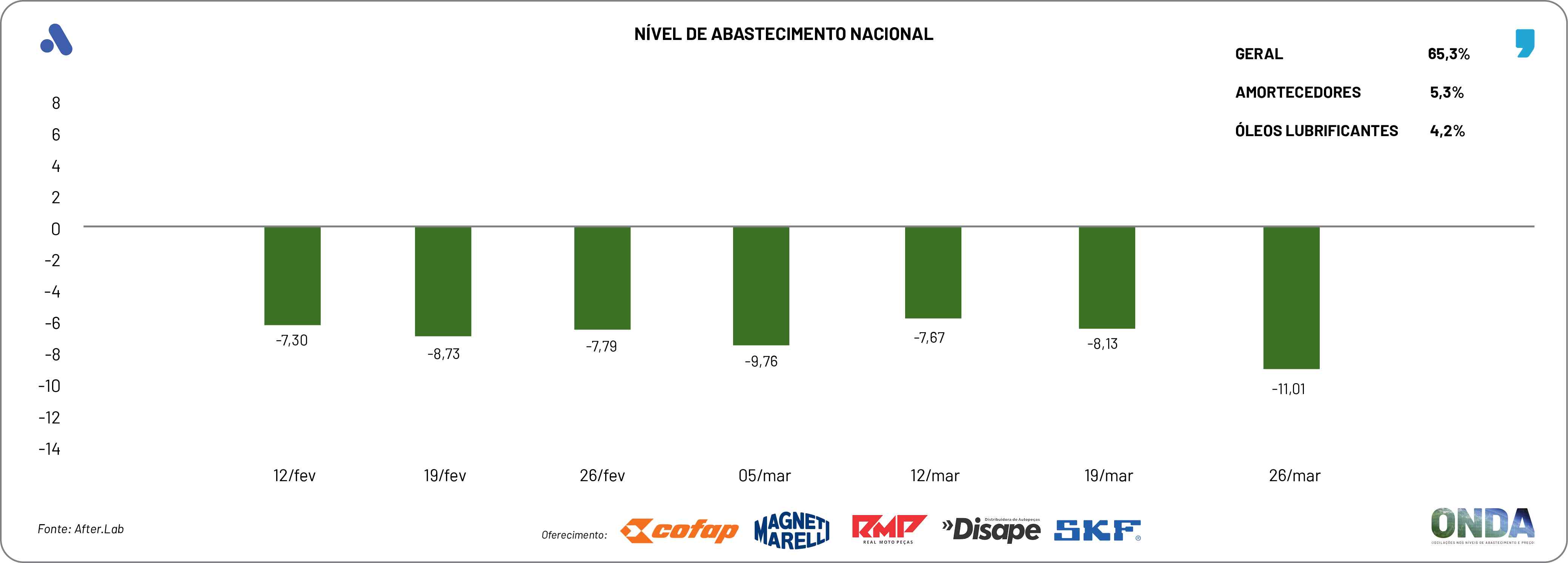 O núcleo de pesquisas da Novo Meio, o After.Lab, finalizou a produção de novos indicadores sobre o ONDA – Oscilações nos Níveis de Abastecimento e Preços desse aftermarket automotivo, segundo os empresários do varejo de veículos leves do país.