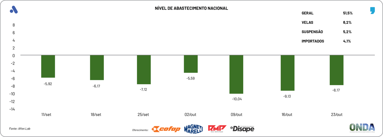 O núcleo de pesquisas da Novo Meio, o After.Lab, finalizou a produção de novos indicadores sobre o ONDA – Oscilações nos Níveis de Abastecimento e Preços desse aftermarket automotivo, segundo os empresários do varejo de veículos leves do país.