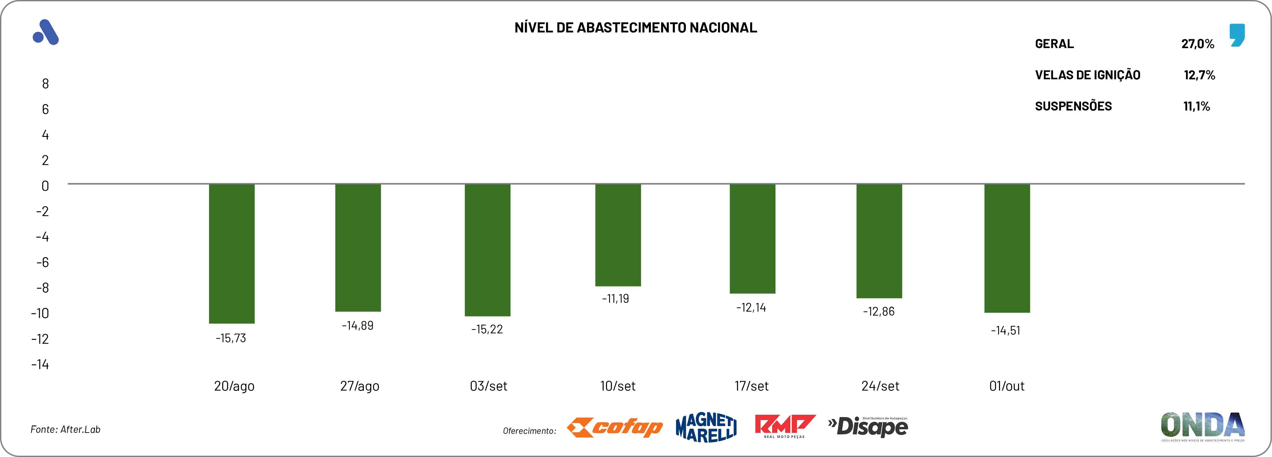 O núcleo de pesquisas da Novo Meio, o After.Lab, finalizou a produção de novos indicadores sobre o ONDA – Oscilações nos Níveis de Abastecimento e Preços desse aftermarket automotivo, segundo os empresários do varejo de veículos leves do país.