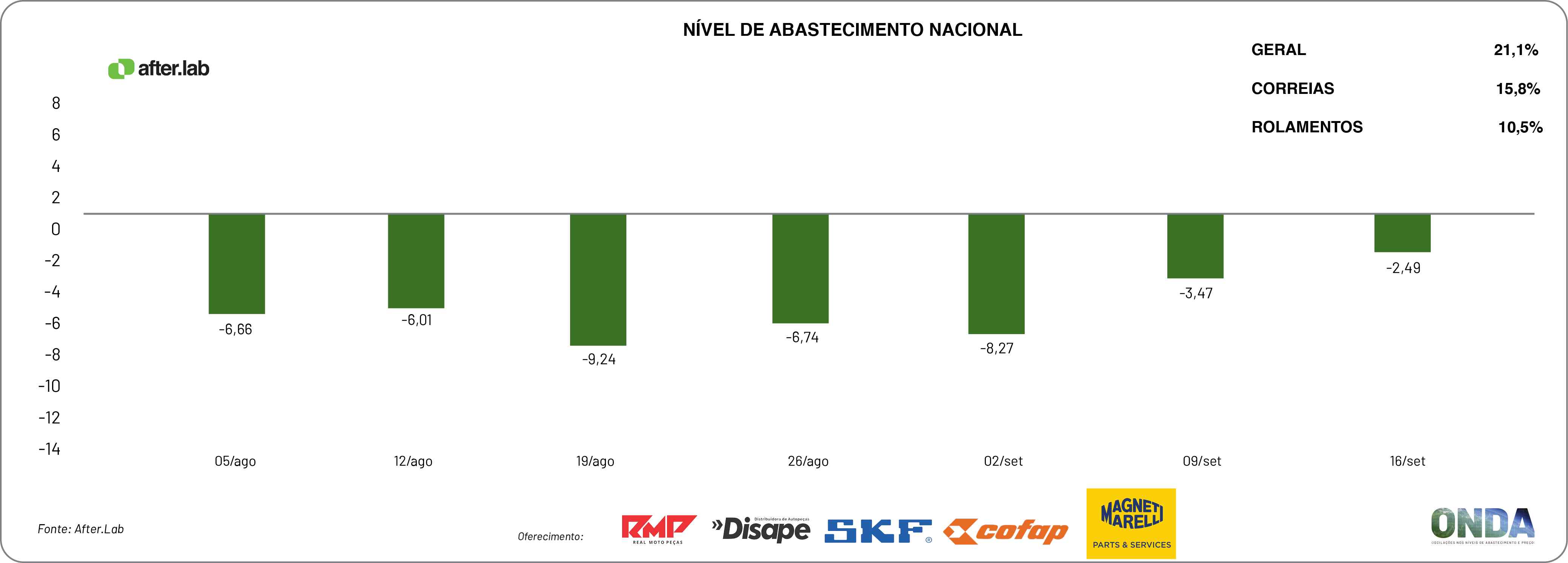 O núcleo de pesquisas da Novo Meio, o After.Lab, finalizou a produção de novos indicadores sobre o ONDA – Oscilações nos Níveis de Abastecimento e Preços desse aftermarket automotivo, segundo os empresários do varejo de veículos leves do país.