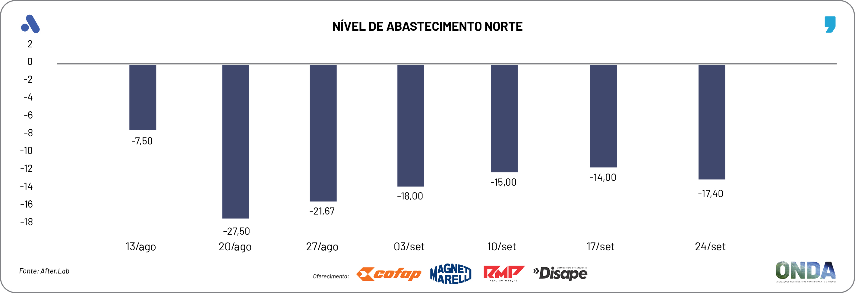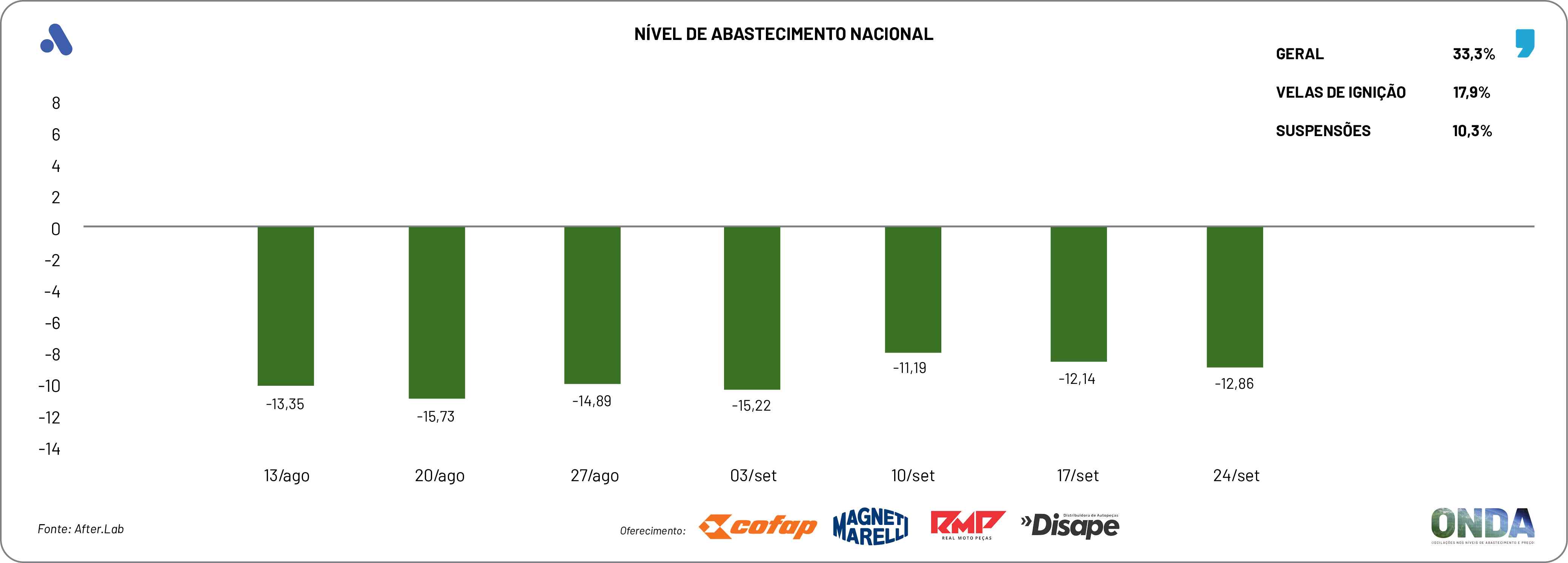 O núcleo de pesquisas da Novo Meio, o After.Lab, finalizou a produção de novos indicadores sobre o ONDA – Oscilações nos Níveis de Abastecimento e Preços desse aftermarket automotivo, segundo os empresários do varejo de veículos leves do país.