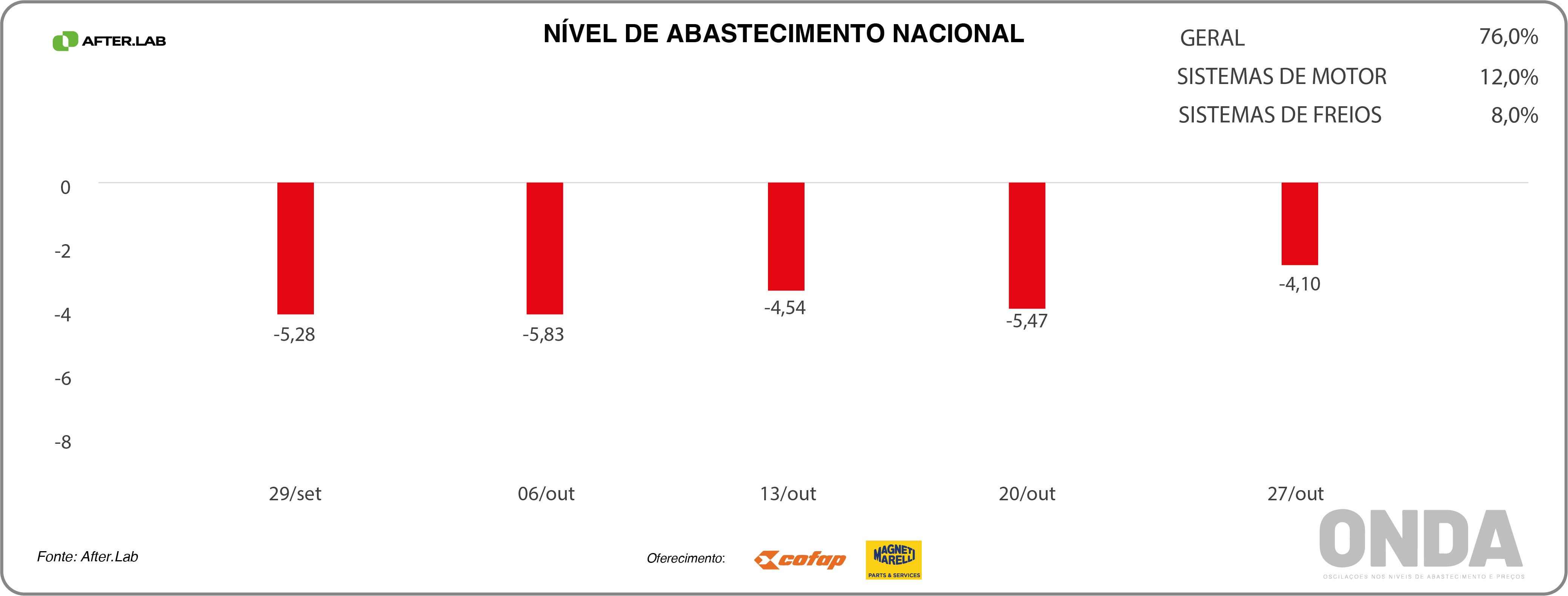 O núcleo de pesquisas da Novo Meio, o AfterLab, finalizou a produção de novos indicadores sobre o ONDA – Oscilações nos Níveis de Abastecimento e Preços desse aftermarket automotivo, segundo os empresários do varejo de veículos leves do país.