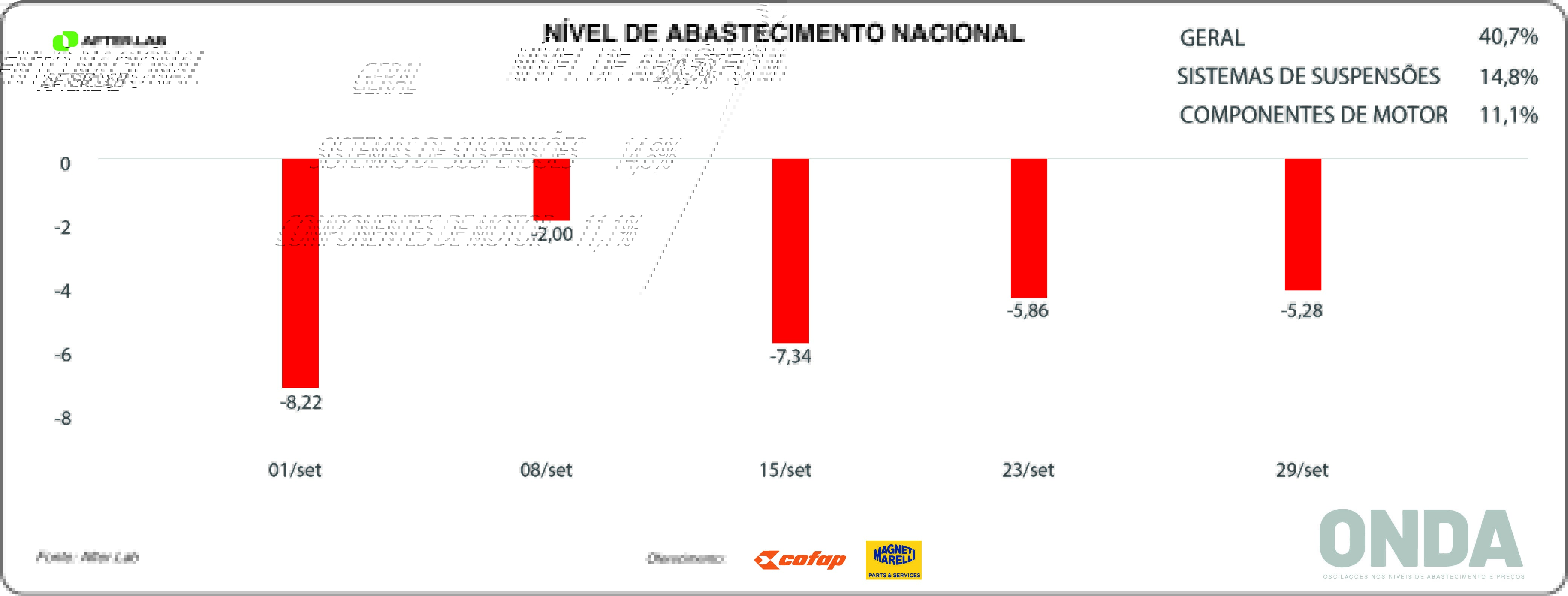 O núcleo de pesquisas da Novo Meio, o AfterLab, finalizou a produção de novos indicadores sobre o ONDA – Oscilações nos Níveis de Abastecimento e Preços desse aftermarket automotivo, segundo os empresários do varejo de veículos leves do país.