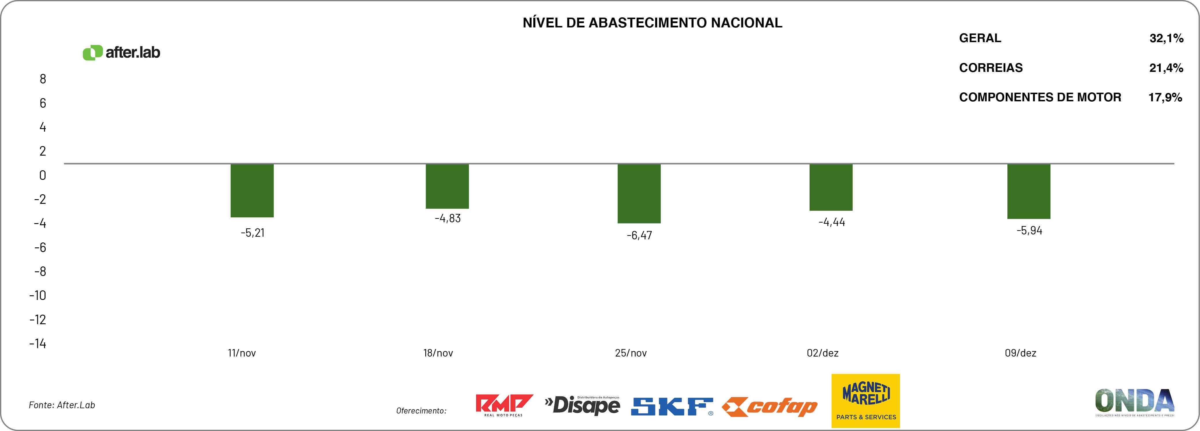 O núcleo de pesquisas da Novo Meio, o After.Lab, finalizou a produção de novos indicadores sobre o ONDA – Oscilações nos Níveis de Abastecimento e Preços desse aftermarket automotivo, segundo os empresários do varejo de veículos leves do país.