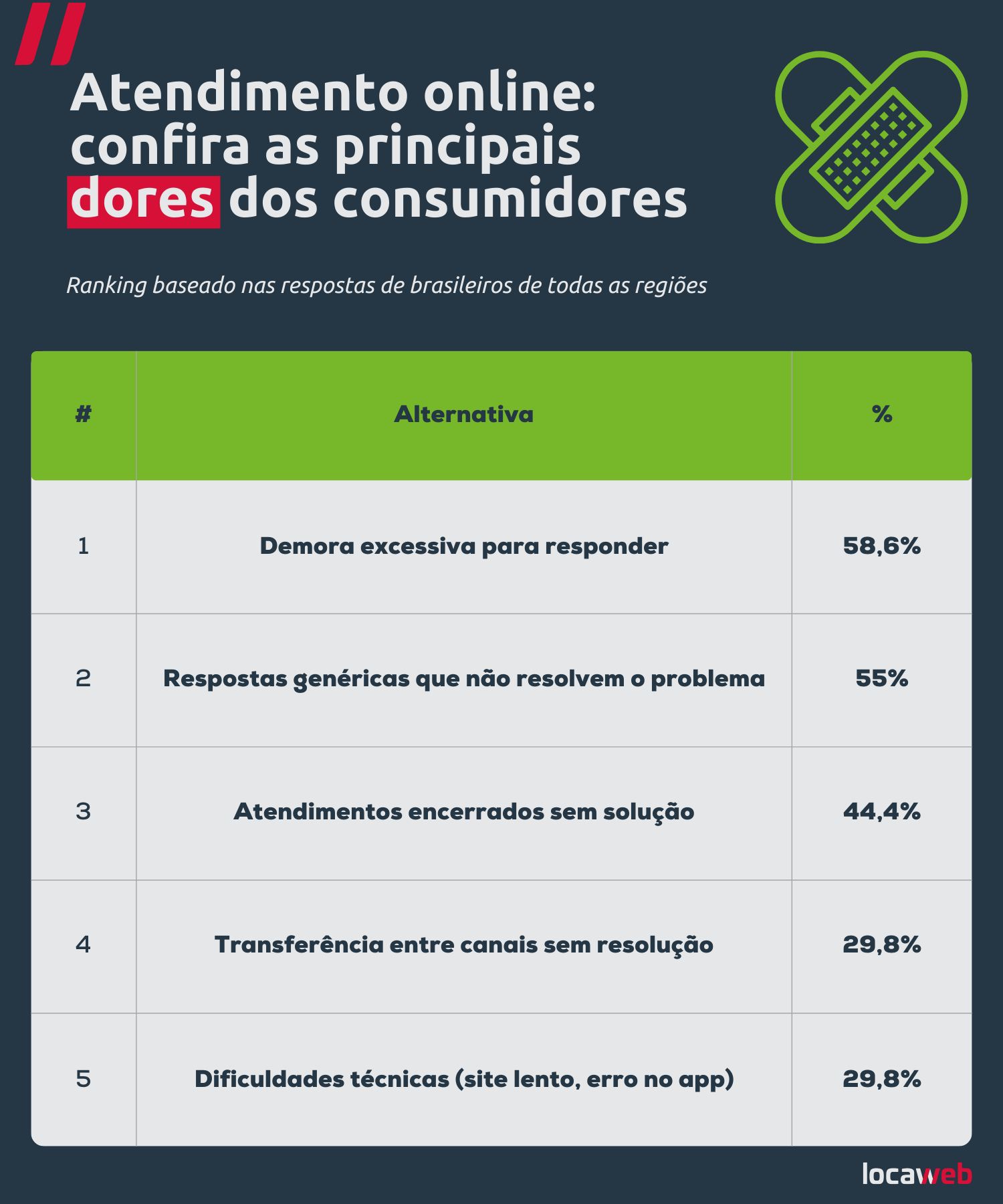 A cena é mais comum do que parece: ao entrar em contato com uma marca pela internet, o retorno vem muito depois do esperado, com uma mensagem genérica e… Nenhuma solução.Você já passou por algo do tipo? Se sua resposta é sim, saiba que não é o único: segundo a maioria dos consumidores ouvidos em um estudo, a demora excessiva, mensagens padrão e falta de solução são os três pontos onde as empresas mais falham no ambiente digital — com impactos na credibilidade e relacionamento com os usuários. A constatação faz parte do novo levantamento da Locaweb, que, após ser reconhecida pela 5ª vez como melhor atendimento no Prêmio Reclame Aqui, decidiu investigar algo que parece estar sendo deixado de lado por muitos negócios nacionais: a qualidade do atendimento digital, seja via site, redes sociais, email ou aplicativos de mensagens.A pesquisa, divulgada nos últimos dias, revela o quanto experiências negativas costumam gerar ruídos entre quem está do outro lado da tela. À especialista em soluções de internet, 6 em cada 10 consumidores revelaram evitar novas compras em uma empresa logo após um mau atendimento, afastamento também reconhecido pelos 23,6% que, mais do que isso, também deixam de recomendar a marca a outras pessoas.
