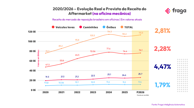 Entretanto, diferente de setores como o imobiliário ou o de bens de luxo, a reposição automotiva é uma demanda de necessidade. Uma peça não substituída hoje acabará falhando e possivelmente danificando outros sistemas, o que gera um efeito cascata de manutenção obrigatória no futuro, o que em tese aceleraria a retomada do crescimento nos próximos anos. A projeção atual indica que 2026 será um ano de recuperação, com crescimento estimado em 2,81% sobre 2025. Contudo, o otimismo é cauteloso. Fatores externos como as incertezas eleitorais, o impacto econômico de grandes eventos (Copa do Mundo) e as turbulências geopolíticas globais permanecem como variáveis que podem alterar esse cenário ao longo do ano.