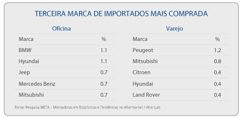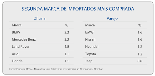 Um dos destaques é a recorrência da marca BMW, o que mostra que, ao que tudo indica, o portfólio de produtos originais oferecidos por fabricantes e distribuidores no aftermarket independente não vem atendendo as demandas das lojas e oficinas.