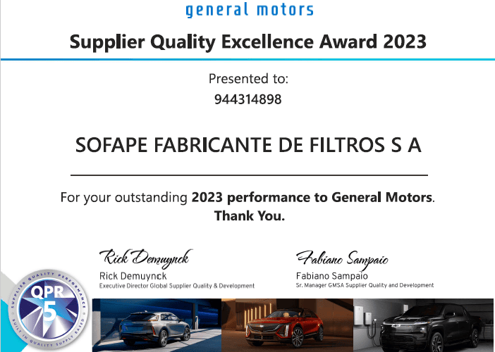 A Tecfil foi premiada pela General Motors Brasil, pelo terceiro ano consecutivo, com o Prêmio de Excelência em Qualidade do Fornecedor. A premiação reconhece o desempenho da empresa em qualidade, pontualidade nas entregas e relacionamento com a montadora ao longo de 2023.