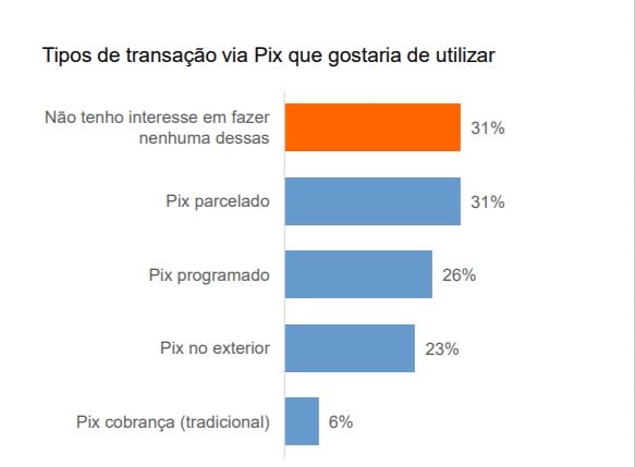 De qualquer maneira, mesmo entre quem usa Pix, o fato de ter de tirar o celular do bolso e se conectar ao aplicativo do banco para fazer a operação no varejo físico é motivo para deixar de usar o Pix para 27% dos respondentes.